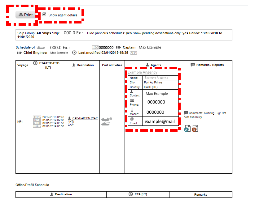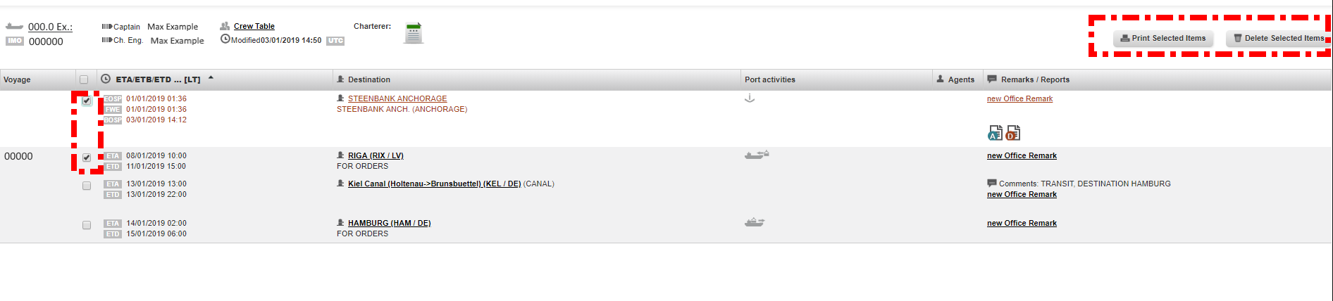 6. If you uncheck the function Hide previous schedules you can compare if someone changed the travel plan and therefore the next port to be called.