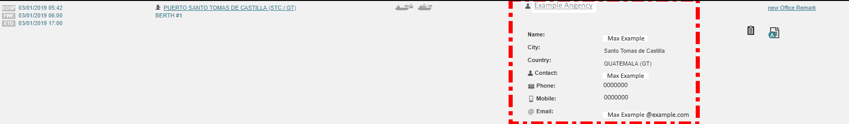 This row can be used for relaying the next schedule(s) to the other users of Fleettracker or other departments that can see the Ship Schedule.