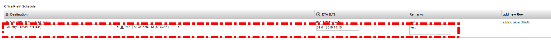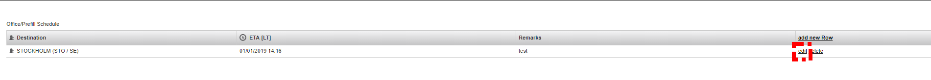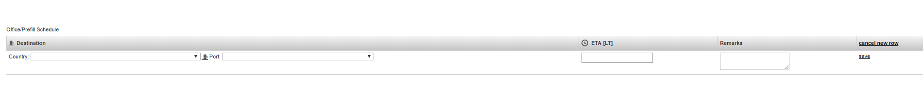 You can also add a new row. Sometimes office users are able to know the next schedule(s) before the vessel and this information can be shared on Fleettracker via adding a new row.