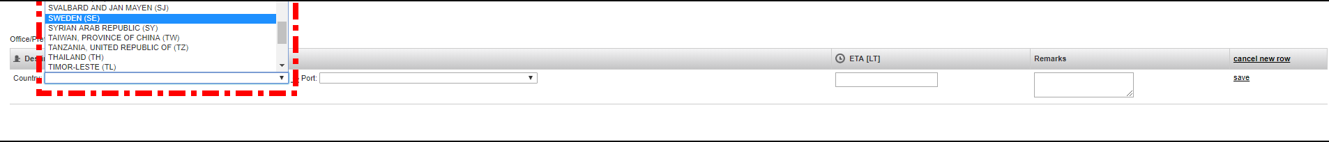 3. From the first drop-down menu, you can choose the country of the port.